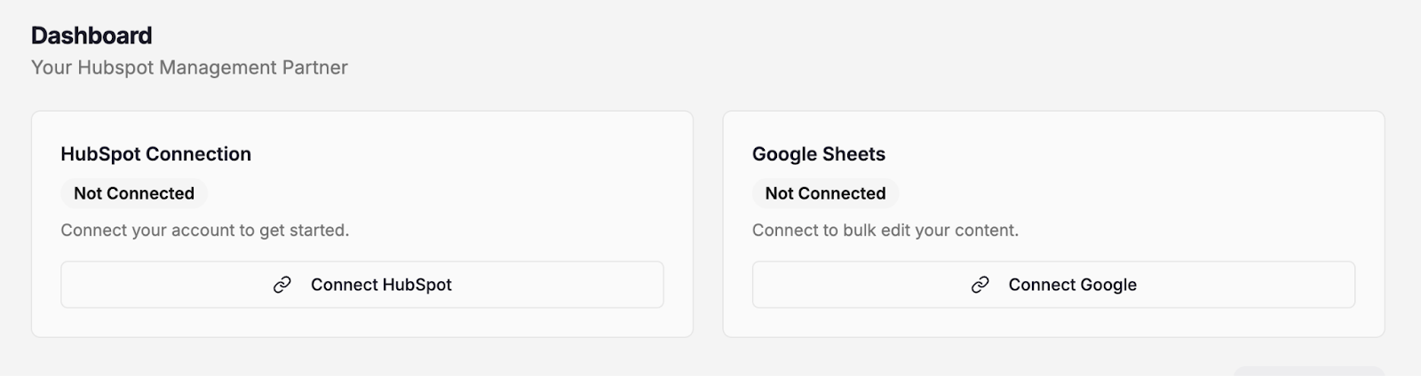 - After you sign in, you can see that hubspot and google sheets are not connected.