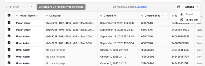 - Once you click on In-app Edit, You can choose various bulk edit fields and change the data according to your use case.