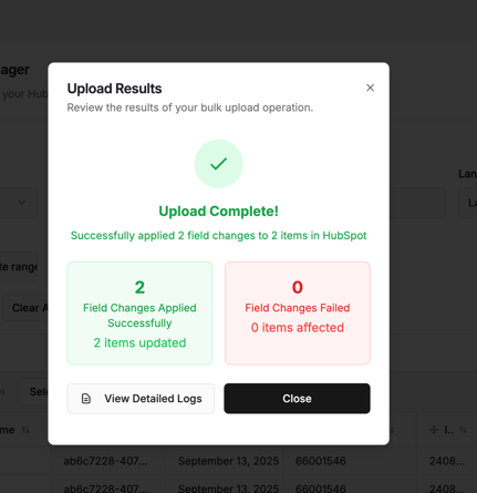 Make edits in the familiar spreadsheet UI, then push changes back to HubSpot with one click.