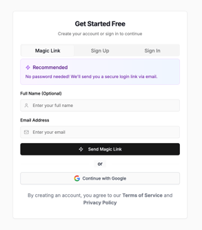 - Magic link: We send you a magic link to your email and authenticate your identity.